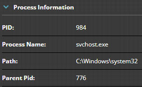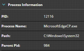 Next lets rebuild the process tree for “MicrosoftEdgeCP.exe”. In this case it is a manual process, but not difficult. To do so we need to search the triage data to find the process (Figure 11) and its parent (Figure 12) and so forth until we have completely rebuilt the tree. In this case it’s trivial since the browser process was a child of an instance of a well known “svchost.exe” (PID 984) process.
