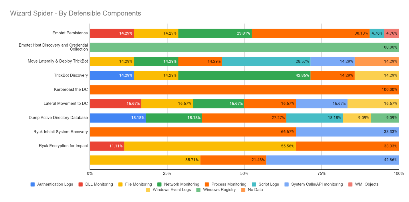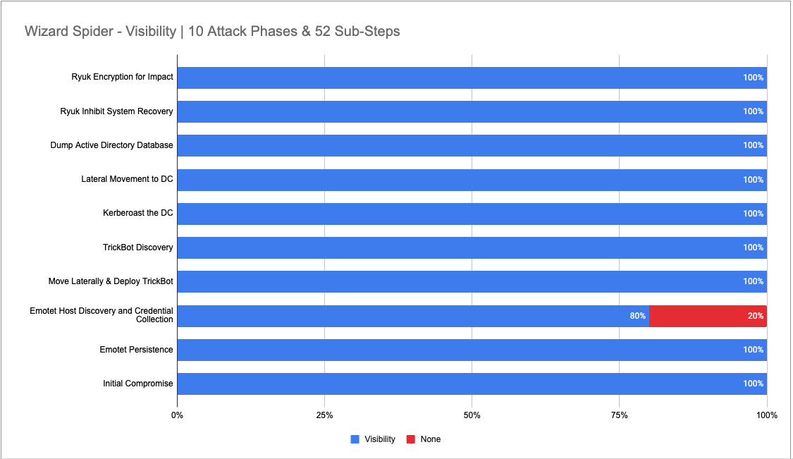 | Wizard Spider | Across 10 attack Phases comprised of 52 sub-steps | 98% 51 of 52 sub-steps |