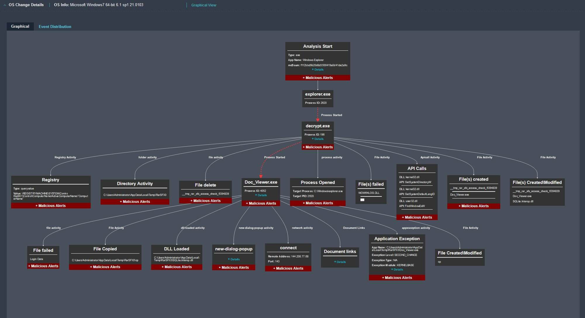 Trellix boasts a rich history in sandbox technology from its FireEye heritage with over 30 patents on the world’s leading file forensics platform. This is a perfect complement to Amazon GuardDuty Malware Protection for S3, because it can describe all of the actions that a newly-discovered malicious object would take, if executed. These actions are described in an operating system change report “OS Change Report” that Trellix Wise in Helix Connect understands and can leverage. When Helix Connect receives a Amazon GuardDuty finding for S3, it can submit the offending object to Trellix IVX, then process the change report as a blueprint for an investigation.