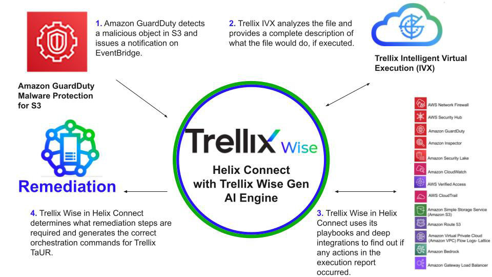 But a big question remains: How would you notice if Amazon GuardDuty detects something malicious, and what would you do next? In this post, we’ll illustrate how the partnership between Trellix and AWS makes the answer simple and effective by showing how the Amazon Bedrock-powered Trellix Wise automates the investigation and response.