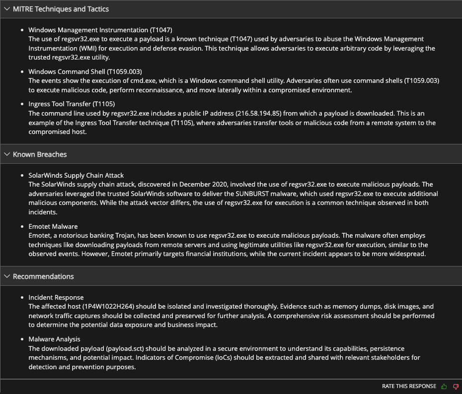 The use of Trellix Wise with our EDR solution is geared toward one thing: making it easier for analysts to uncover, investigate, and remediate a threat quickly. The addition of GenAI to Trellix EDR is intended to provide highly reliable assistance with a comprehensive set of investigative tips, such as: why are they getting alerted, what can they do about it, what tactics or techniques were used by the adversary, and how can they remediate quickly.. ! We’ve created a number of features within Trellix EDR that make this a reality, here are just a few: