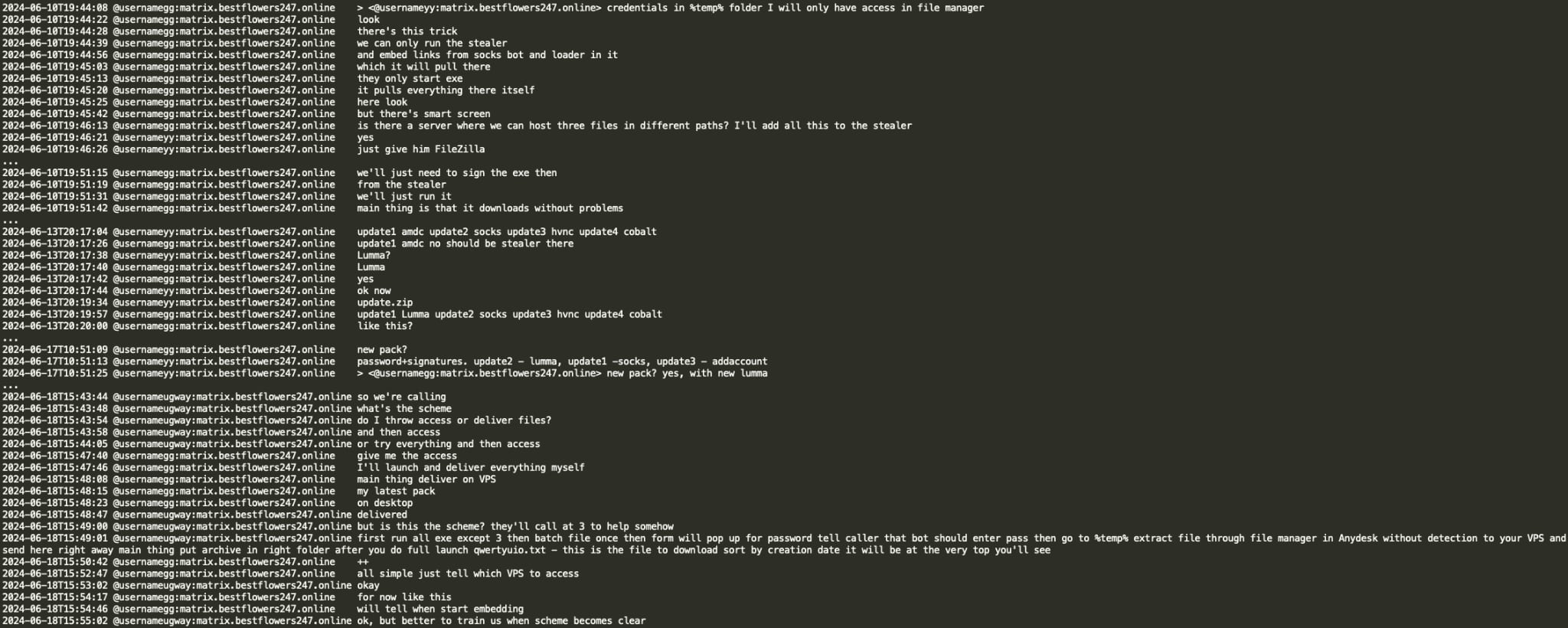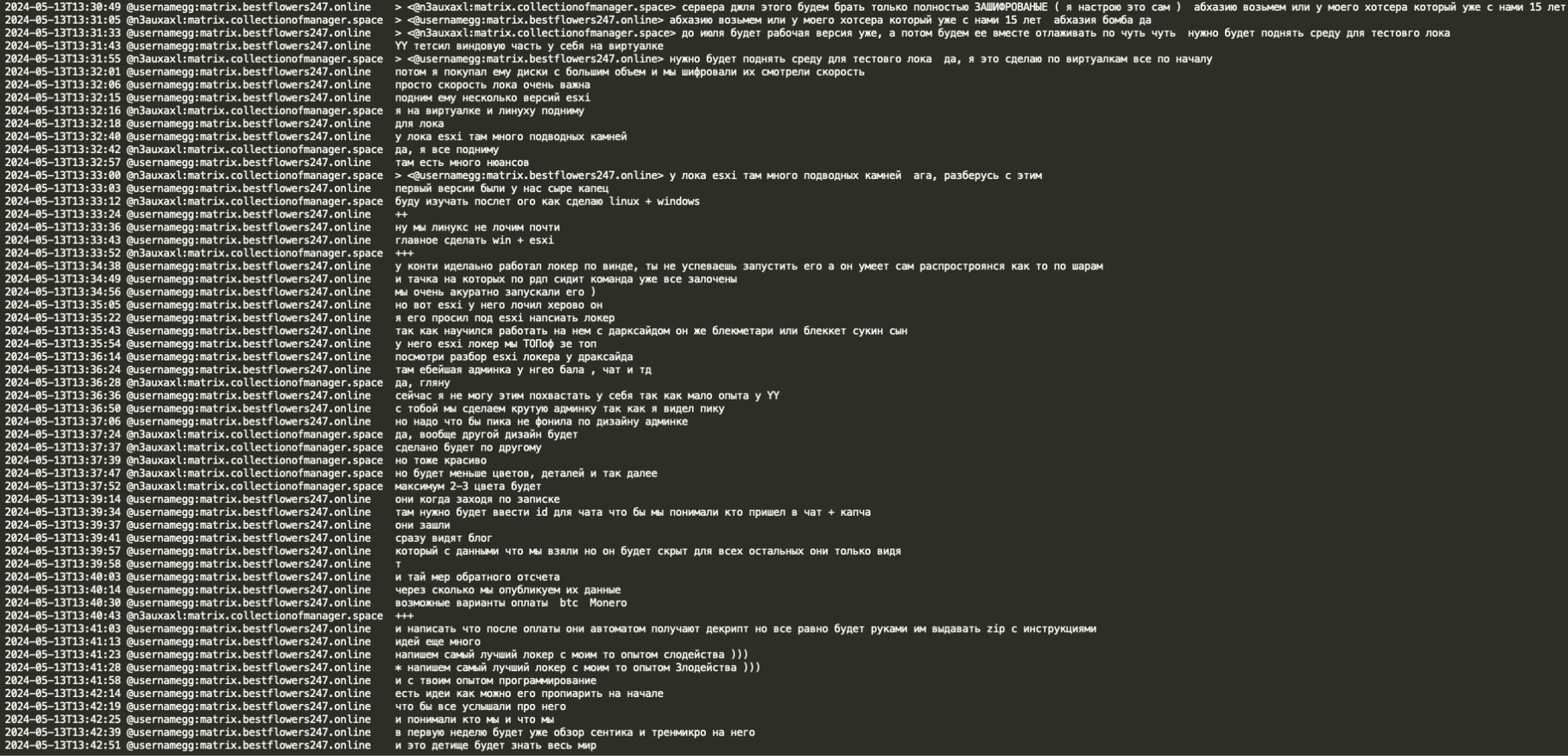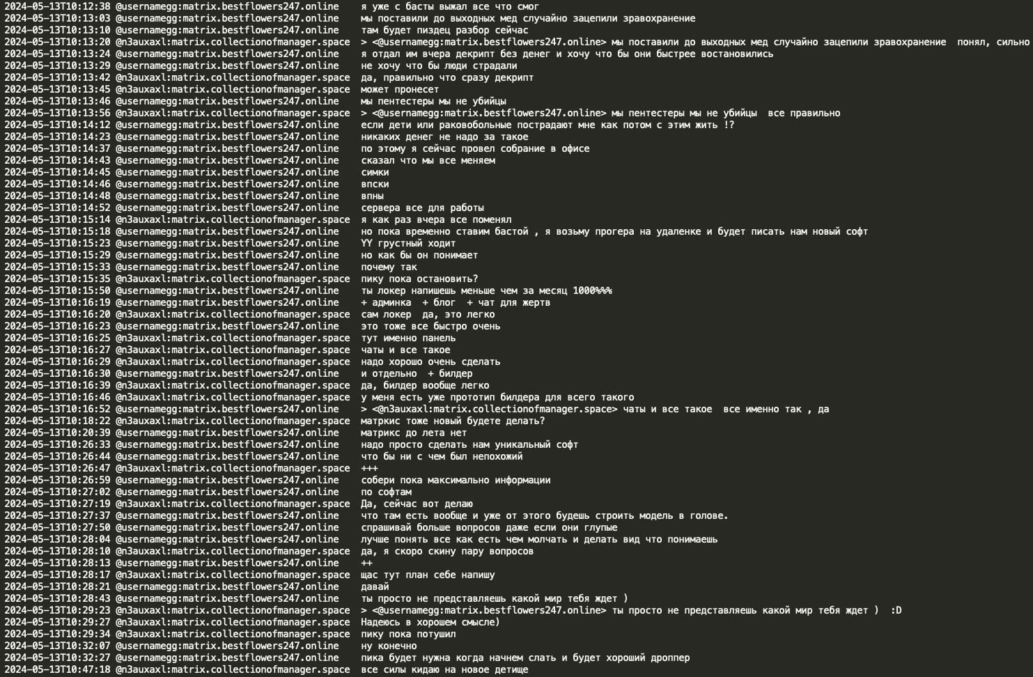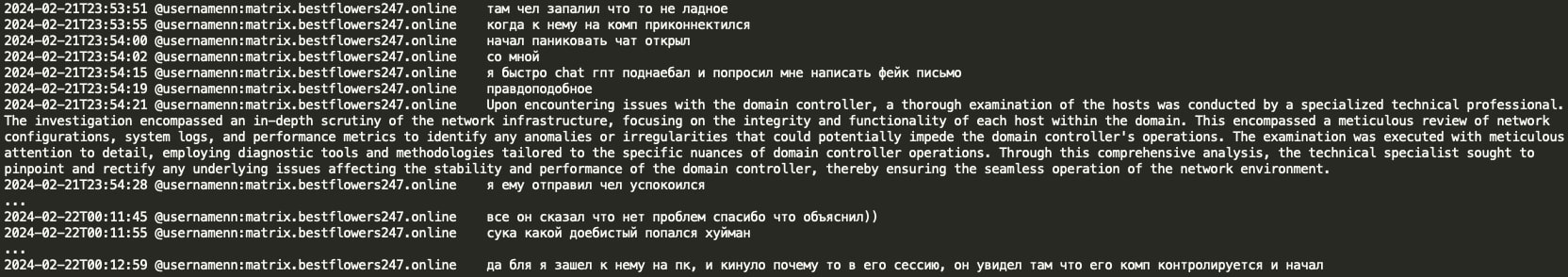 On Feb 11, 2025 a Telegram user @ExploitWhispers shared via their Telegram channel ‘shopotbasta’ (EN: ‘basta whisper’) Black Basta RaaS (Ransomware as a Service) Matrix chat leaks containing over 200,000 messages spanning from September 2023 to September 2024. The @ExploitWhispers claim that Black Basta has recently attacked Russian banks and thus crossed the line, therefore they decided to leak their internal chat communications.