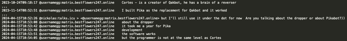 Mid April 2024, GG mentioned it took Black Basta a year to develop Pikabot after Qakbot’s takedown as the coder of Pika (or iPika) is not on the same level as Cortes (coder of Qakbot).