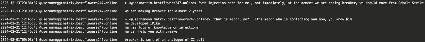 The Black Basta group appears to have developed its own post-exploitation C2 framework called Breaker. GG states that YY (coder) has been working on Breaker for the past two years and that they would like to transition from CobaltStrike/Metasploit frameworks to their custom tool Breaker. It appears that GG involved Pikabot developer mecor to assist YY with Breaker development as mecor has extensive knowledge around injections.