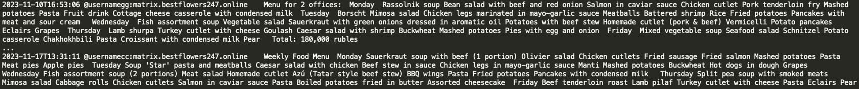 Black Basta gang members share the weekly canteen menu and frequently discuss matters in the kitchen. Weekly kitchen expenses for two offices appear to be approximately $2,000 USD.