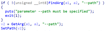 On execution, the malware will first parse the command line arguments passed to it. The first parameter the malware will parse is the “--path” which is the path that the locker will encrypt and it must be specified or the ransomware will finish its execution.