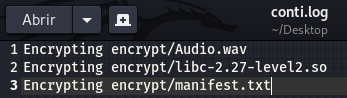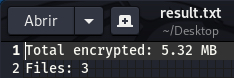 Besides the log file, Conti also creates a file in the current directory named “result.txt” where it writes the size of encrypted files and the number of files it has encrypted.