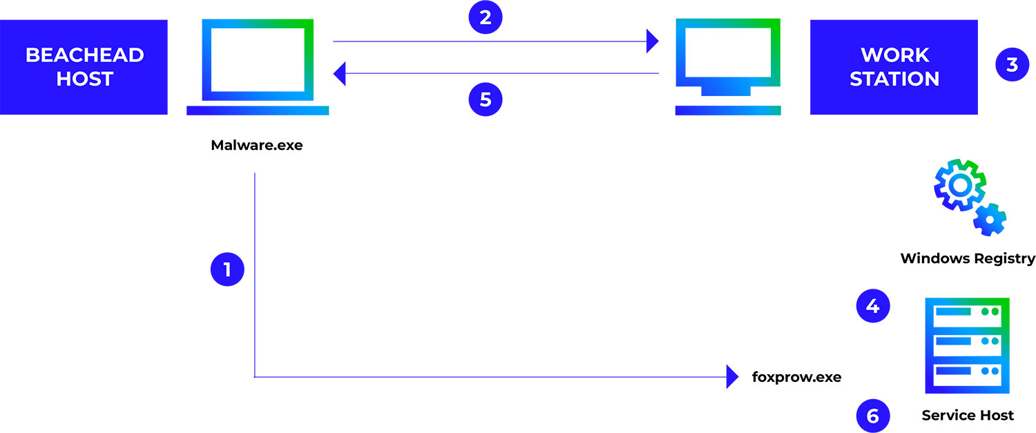 | 1 | Transfer of malware file (renamed) to victim machine |