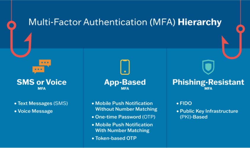 - Enable strong MFA (App, OTP, Token OTP, FIDO or PKI based) on your online services as outlined below.