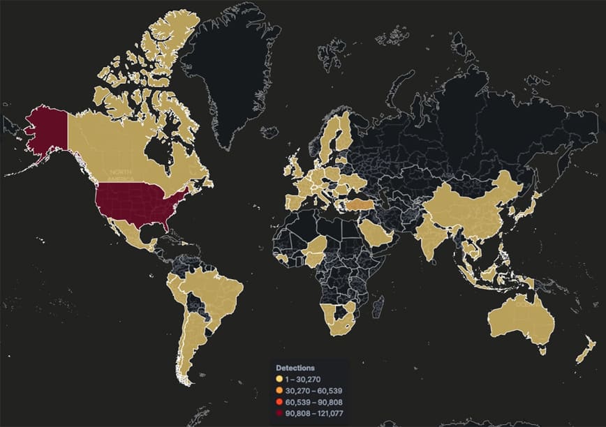Figure 2 Global heatmap of Qakbot detection over the last 3 months