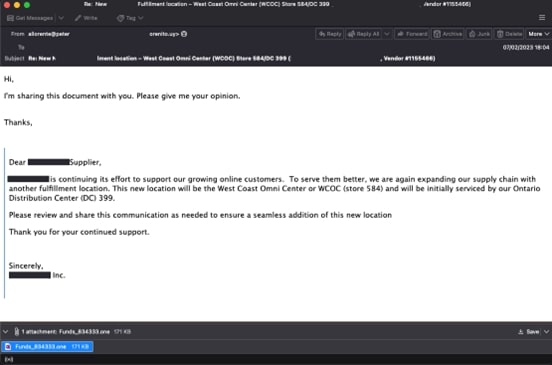 In this research, we analyze a specific sample identified by the MD5 hash 83feba178d0097929e6efeb27719d5db. It belongs to a Qakbot campaign which is primarily spread through spam email that include Office OneNote document attachments. The Trellix Advanced Research Center’s Threat Intelligence Group gathers and analyzes information from multiple open and closed sources before disseminating this report.