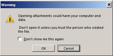 A Call-to-Action button (CTA) is present in all the OneNote documents which requires Click Action to execute the embedded payload. If the victim believes the fake message and clicks on CTA button, the embedded attachment will be opened with a warning message box. Once the victim clicks on "OK", there is no warning message anymore, and it will download and execute the remote payload.