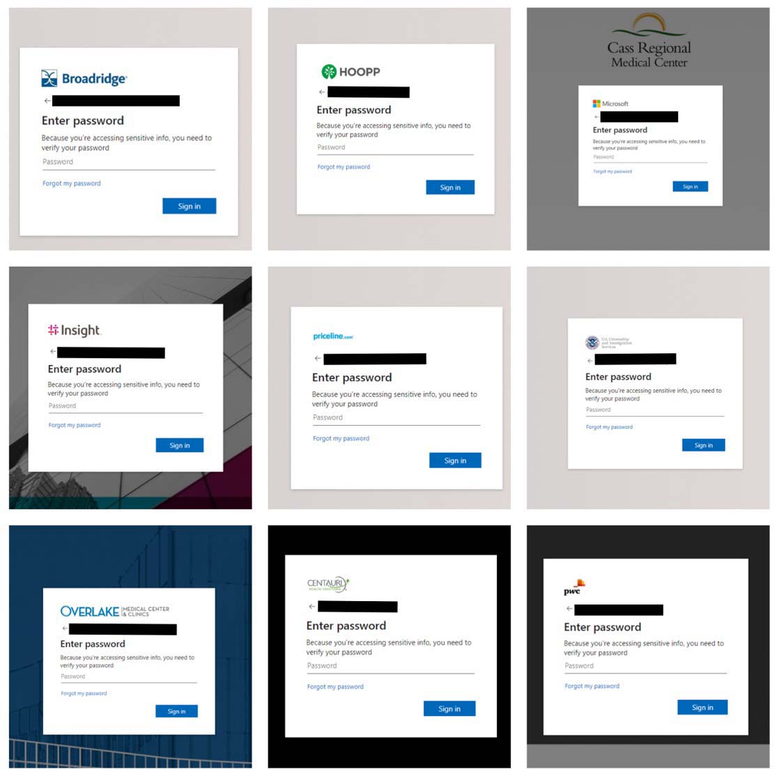 Figure 11 Sample phishing pages