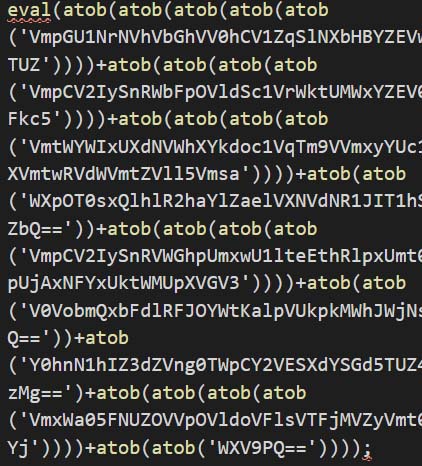 Similarly, Figure 17 shows variation of Figure 16. In this sample, there are multiple base64 decoding and execution via eval which are concatenated together to be finally executed via eval function.