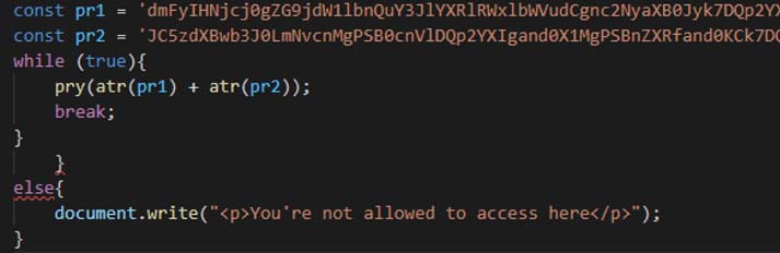 Figure 6: Base64 encoded Code block which loads final phishing page