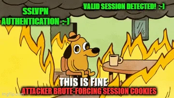 This vulnerability is a nightmare for network security because it allows attackers to hijack active VPN sessions without needing any credentials. Forget phishing, credential stuffing, or MFA bypass techniques—none is necessary. Once an attacker brute-forces a valid session cookie, they can impersonate a legitimate user and gain full access to internal network resources. Since SSLVPN is often used to protect critical infrastructure, attackers can move laterally, exfiltrate data, or even deploy malware as authorized users.