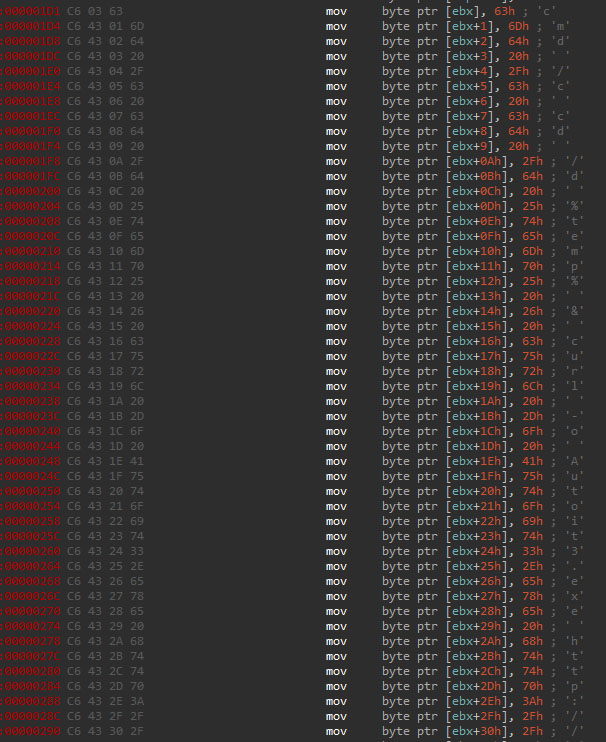 The initial VBS dropper contains obfuscated code within approximately 30 lines of script. When executed, this downloads and executes a Windows batch script from the command and control (C&C) server.