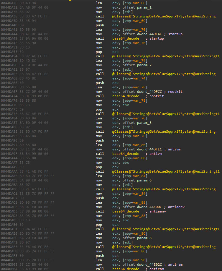 DarkGate contains multiple readable strings to operate. However, these strings are encoded in all versions, except v5.0.19 which only encodes a few ones like the C&C URL. This encoding follows the same approach, a Base64 encoding with custom alphabets: one to encode the configuration and another to encode general purpose strings.