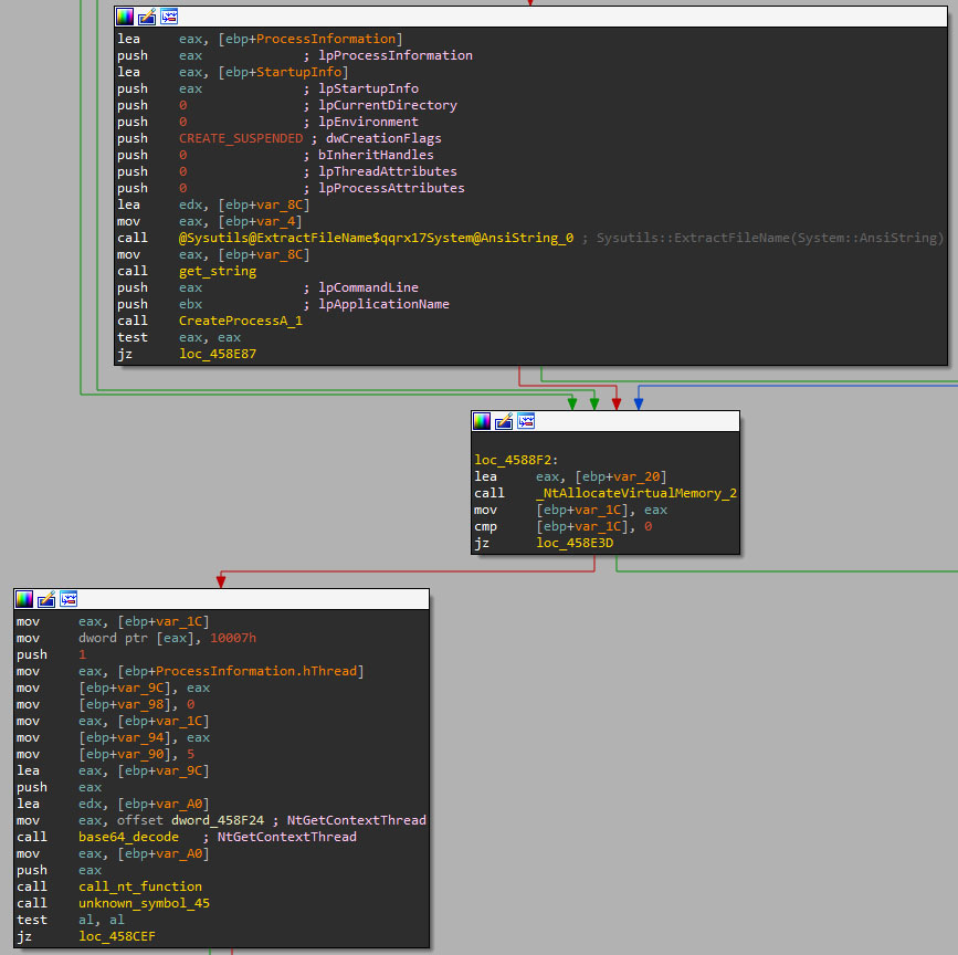This approach resulted in every encoded string being in ASCII format, something the security community’s tools had in mind to decode them. Nevertheless, to try to break these security tools, the DarkGate developer modified the encoding by setting a non-ASCII alphabet to encode general purpose strings. However, it maintained the same alphabet for the configuration string, but added a Zlib compression prior encoding it. These changes resulted in encoded strings that were not in ASCII format. This disruption forced security tools to adapt. The alphabets of the 4.17b sample were the following: