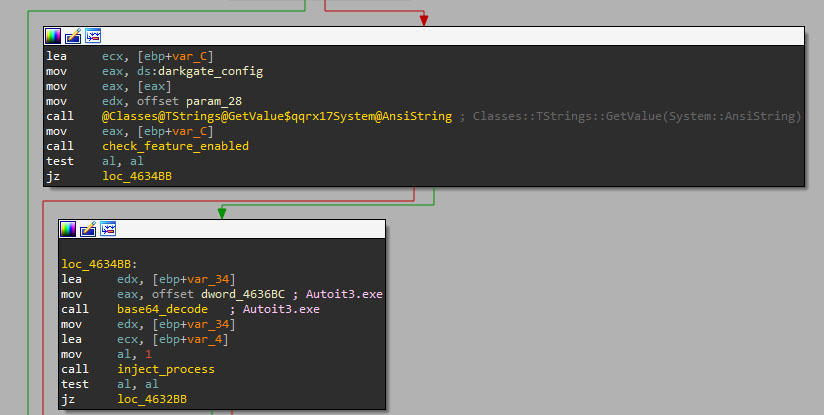 One of the first samples was discovered by Fortinet in 2018, a novel malware that was used to mine cryptocurrencies and deploy ransomware. However, the malware did not gain widespread popularity until 2021, when an updated version was discovered by Avast, which dubbed the malware as MehCrypter. This version already included many techniques that we have seen in the current version of DarkGate , like the usage of AutoIt to load the final payload or a full RAT module to control remote systems.