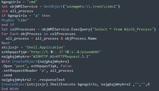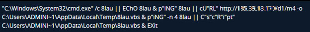 These files contained a Windows Batch script that will run the Window’s "curl" utility to retrieve a VBS script from a remote server and the Windows Script Host using the "CScript.exe" utility to execute it.
