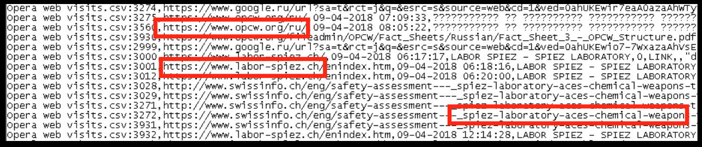Not only did investigators discover what the team had been up to, they also learned what they intended to do. Further analysis of the confiscated devices revealed the team purchased train tickets to travel to Bern, Switzerland, after completing their mission in The Hague, and had conducted Google searches for the Spiez Laboratory. The Spiez Laboratory is the Swiss institute responsible for protecting the population against nuclear, biological, and chemical threats and dangers. Russia likely believed the Swiss lab was assisting the OPCW in its investigation; thus, the team was instructed to compromise it in a similar manner.