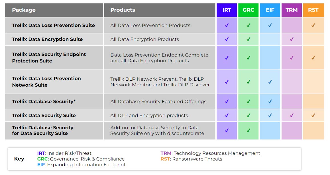 This matrix illustrates how we’ve updated Data Security product packages to address some of the biggest industry challenges.