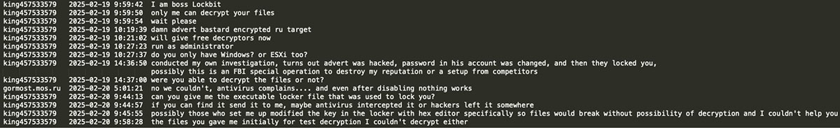 The leaked SQL database dump encompasses data from December 18, 2024 to April 29, 2025, including details pertaining to LockBit adverts (aka ransomware affiliates), victim organizations, chat logs, cryptocurrency wallets and ransomware build configurations.