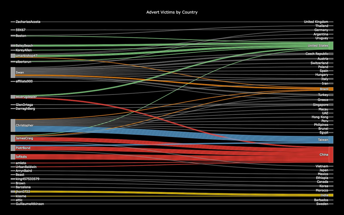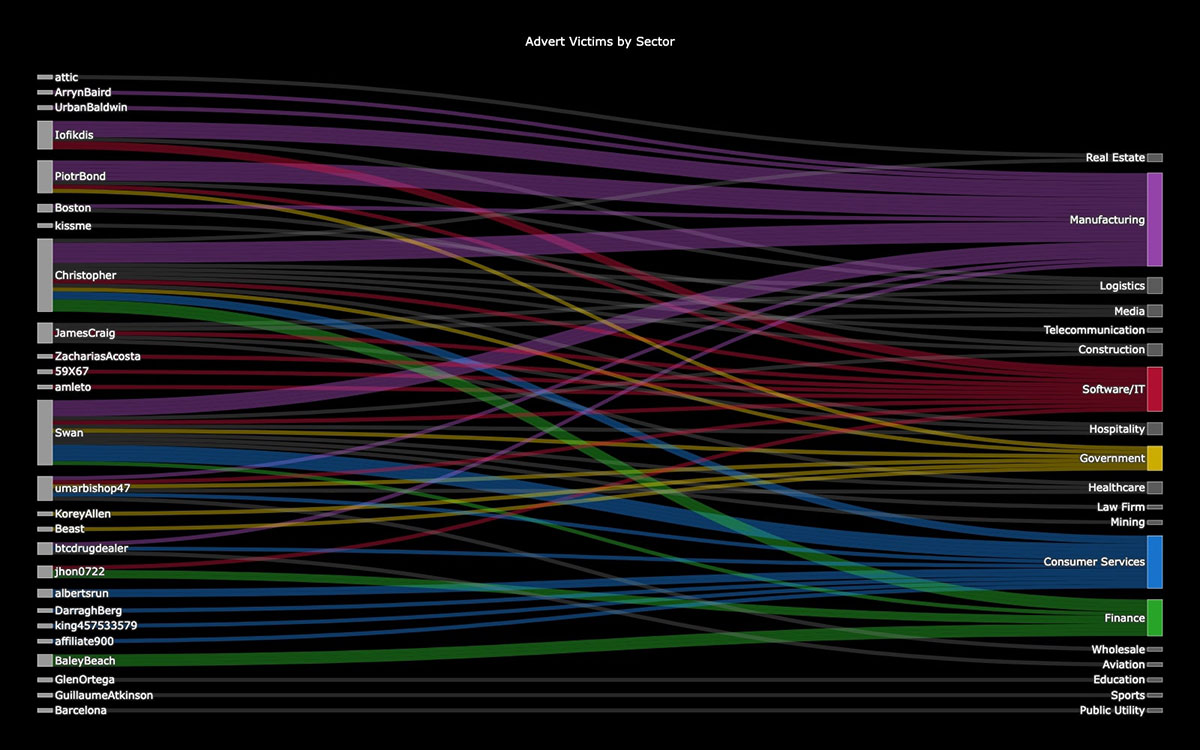 | Advert | Companyrevenue | Victim country | Victim sector |