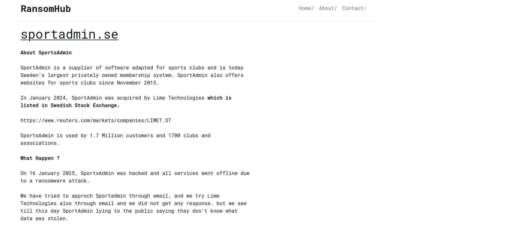 Another affiliate of RansomHUB is GuillaumeAtkinson who attempted to negotiate with a Swedish Sport company SportAdmin at sportadmin.se in mid-January 2025 when RansomHUB RaaS was still active. Although there are no chats available in the leaked LockBit data with the affected company, at the beginning of February 2025 the victim company was posted on the leak site of RansomHUB RaaS proving that GuillaumeAtkinson potentially collaborated with both LockBit and RansomHUB at the same time: