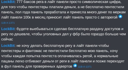 On underground forums, LockBit attempted to minimize the significance of their admin panel leak, stating that an investigation into the incident's cause is underway. They affirmed that decryption keys and stolen data remained secure, and both their full admin panel and blog remain operational. Furthermore, LockBit advised that all ransomware operations generating revenues exceeding $10 million USD are inherently vulnerable to hacking attempts: