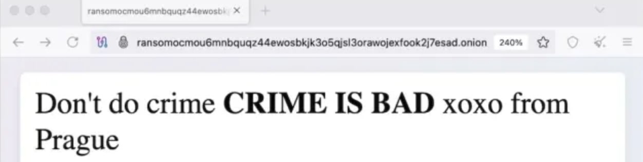 A month prior to that, a similar message was observed on the defaced Everest Ransomware as a Service (RaaS) TOR site: