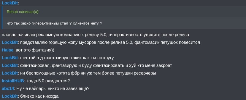 LockBit: I haven't started PR yet, I came to the forum when the FBI hacked ransomhub and the adverts started writing to me en masse, I had to be a little more active without finishing the 5.0 update, I don't regret it, because the FBI pointed out my weak points and showed me my strong ones, now wait a little, the FBI will fuck you one by one, and I will stay