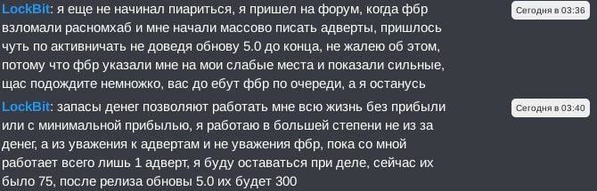 LockBit: my money reserves allow me to work all my life without profit or with minimal profit, I work mostly not for money, but out of respect for the adverts and disrespect for the FBI, as long as there is at least 1 advert working with me, I will stay in business, now there were 75 of them, after the release of update 5.0 there will be 300 of them